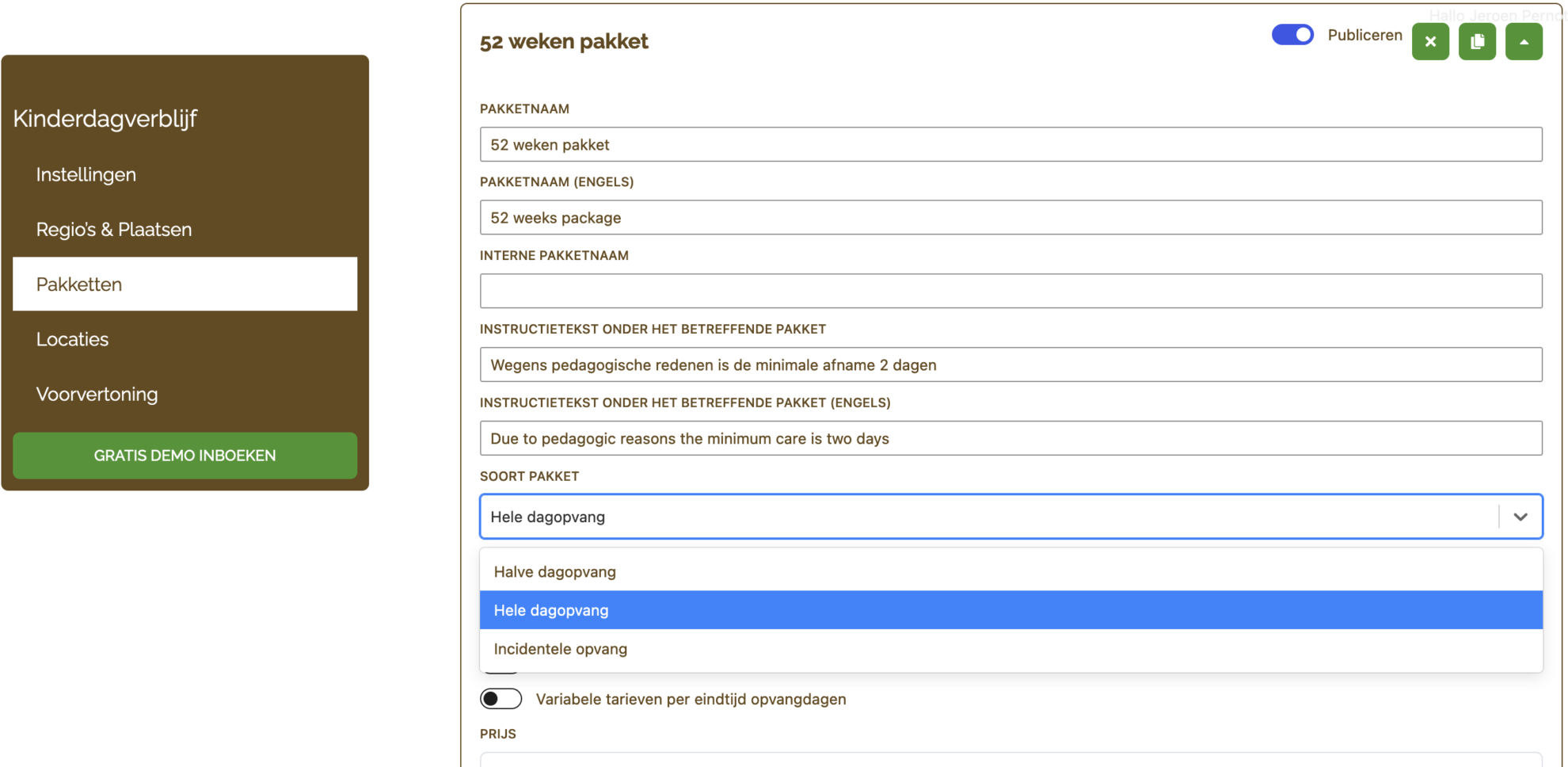 Voor alle vormen van hele dagopvang: Alle weken pakketten, alle tijden, verschillende uurtarieven, etc - Halve dagopvang